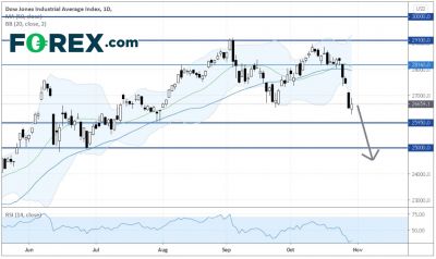 在周三下挫3%之后美股于周四反彈。道指漲139點(diǎn),漲幅0.52%,報(bào)26659;標(biāo)普500指數(shù)攀升39點(diǎn),升幅1.19%,報(bào)3310;納斯達(dá)克100指數(shù)飚升207點(diǎn),升幅1.87%,報(bào)11350。道指日?qǐng)D:承壓來(lái)源:GAINCapital,
