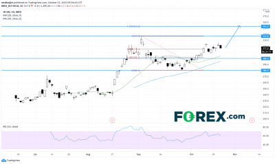 受歐盟宣布準(zhǔn)備加強(qiáng)與英國(guó)的貿(mào)易談判的提振,英鎊小幅反彈。明天將揭曉9月通脹數(shù)據(jù),料月率增長(zhǎng)0.3%,8月-0.4%。技術(shù)面來看,日線圖上,英鎊/美元落在水平阻力1.3080下方,正在挑戰(zhàn)50日均線切入位(藍(lán)線)。因此,讀者可能會(huì)考慮水平阻力