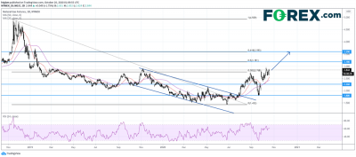 今天上午,中國(guó)公布的第三季度GDP季率增長(zhǎng)2.7%,遠(yuǎn)低于預(yù)期的+3.3%。按年率計(jì)算,GDP增長(zhǎng)4.9%,預(yù)期為+5.1%。由于澳大利亞經(jīng)濟(jì)與中國(guó)關(guān)系密切,中國(guó)任何數(shù)據(jù)表現(xiàn)不及預(yù)期都會(huì)對(duì)澳元產(chǎn)生負(fù)面影響。技術(shù)面角度看,日線圖上,澳元/美元