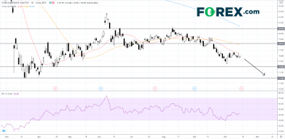 日本官方數(shù)據(jù)顯示,8月工業(yè)生產(chǎn)月率增長1.0%,低于預(yù)期的+1.7%,也遠(yuǎn)不及7月的+8.7%。8月產(chǎn)能利用率僅為2.9%,低于預(yù)期的8.0%。技術(shù)面角度看,日線圖上,美元/日元封頂于一條下跌趨勢(shì)線和下降中的50日均線(藍(lán)線)。因此,讀者或