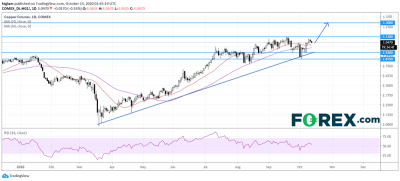 因投資者仍認(rèn)為主要國家的政府支出計劃將提振銅需求量,銅總體保持看漲勢頭,彭博消息指出,中國包括新能源汽車充電樁和5G基站在內(nèi)的新基建計劃,今年可能帶來15萬噸銅(占總需求的1.2%)的消費(fèi)量。日線圖上,芝加哥商品交易所(ICE)銅期貨仍在上