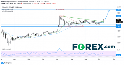 國慶假期后中國股市上漲。中國A50指數(shù)收盤價創(chuàng)下2個月高點。上周五發(fā)布的9月財新中國服務(wù)業(yè)PMI升至54.8,好于54.3的預(yù)期值和54.0的前值。該報告的要點包括:“企業(yè)活動與新增訂單的增速雙雙加快(......)就業(yè)連續(xù)第二個月增長(.